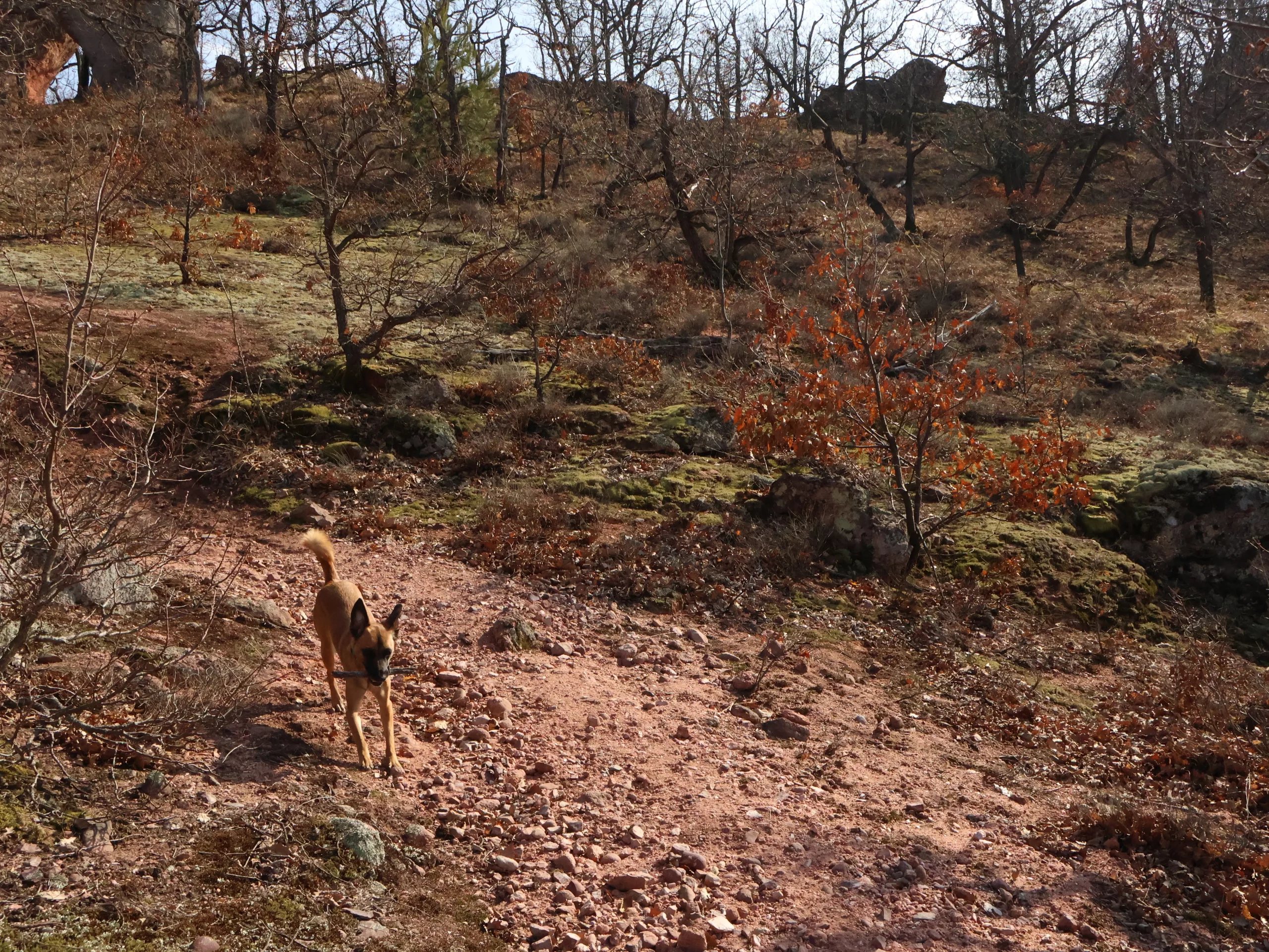 On passe un bon moment à les admirer avant de reprendre le même chemin pour le retour. Et là, surprise ! En route, deux chiens adorables nous accompagnent. Ils semblent être en pleine forme, bien soignés, et Tika se lie rapidement d’amitié avec eux. On pense que ces chiens appartiennent probablement à des familles locales, ils sont clairement chouchoutés. Cela nous a quand même attristé de les laisser quand on a repris la voiture. Une belle fin de journée avec de nouveaux amis à quatre pattes !