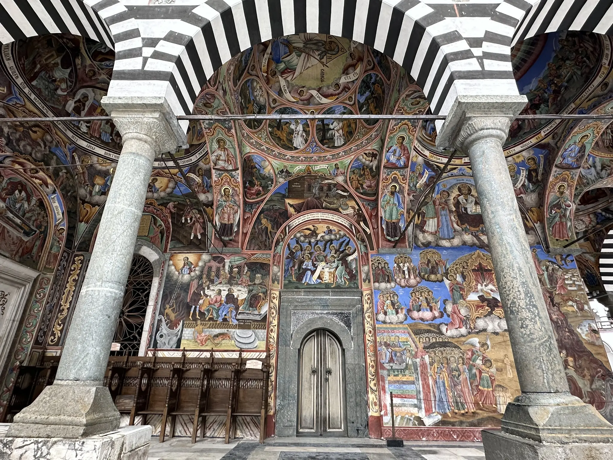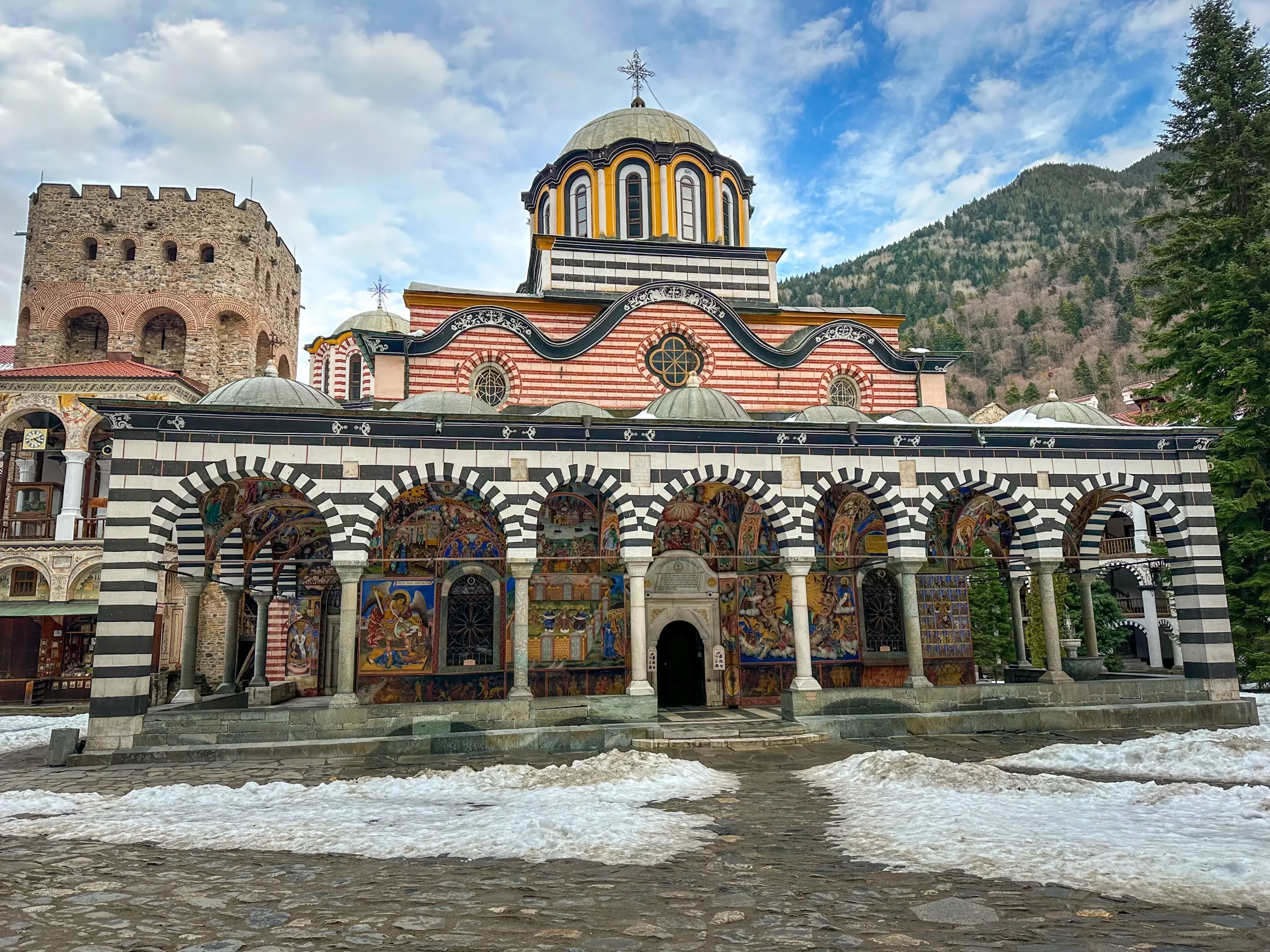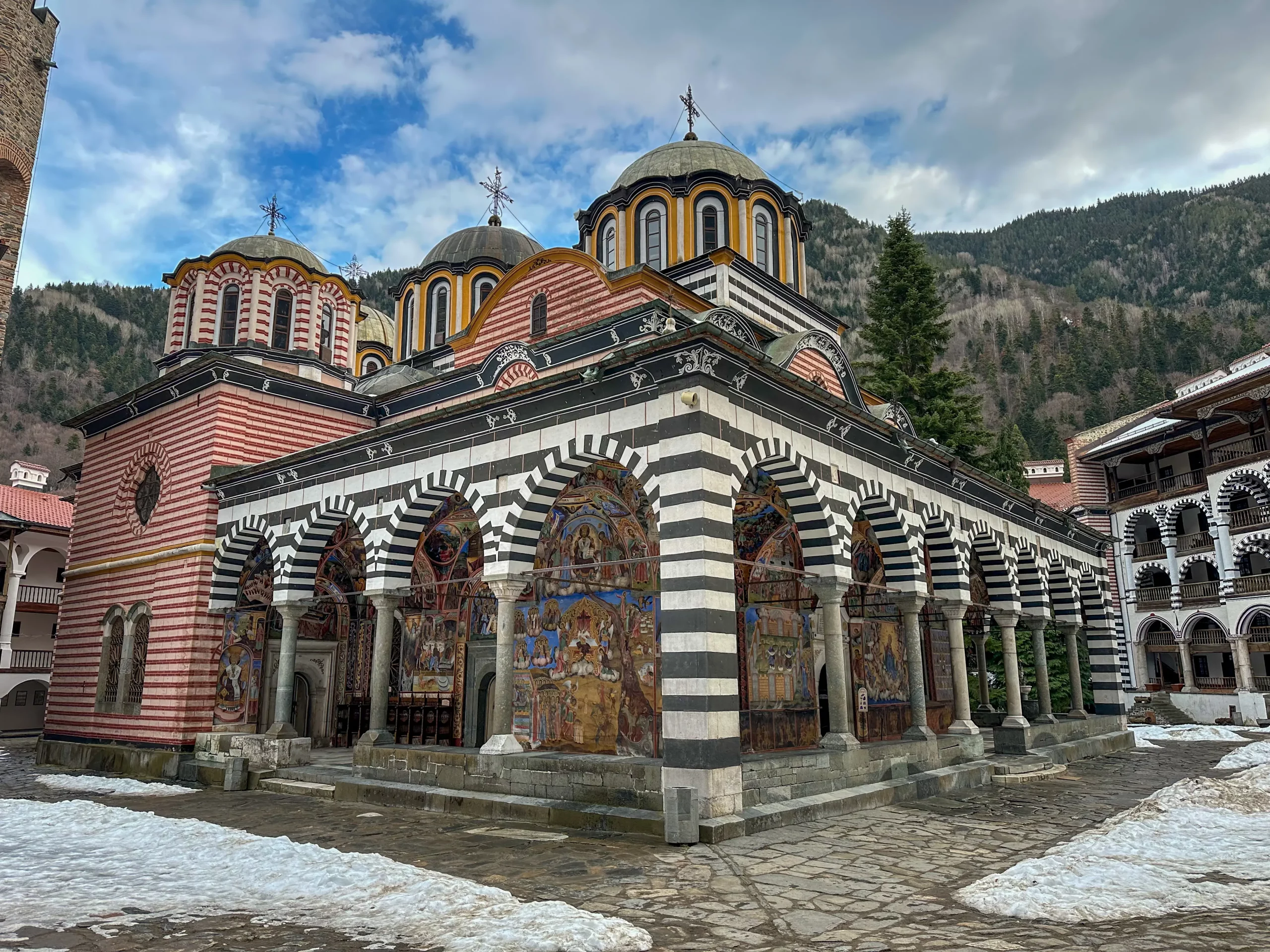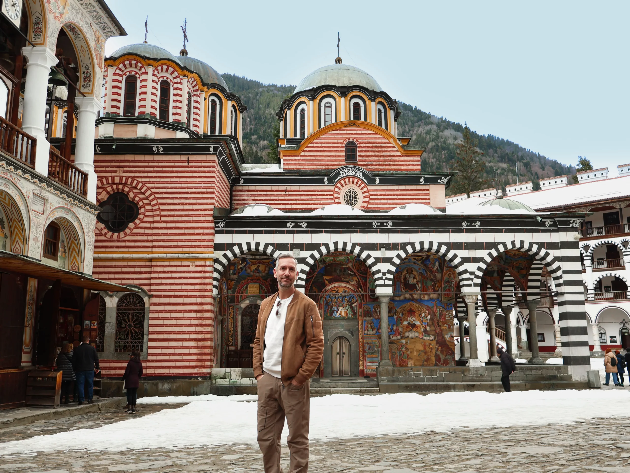 On décolle pour une aventure au cœur de la Bulgarie, direction le Monastère de Rila, l’un des sites les plus emblématiques du pays, perché à plus de 1100 mètres d’altitude dans le massif de Rila. C’est un peu comme un voyage dans le temps, avec son architecture spectaculaire et ses fresques colorées. On doit malheureusement laisser Tika dans la voiture, car les chiens n’ont pas accès à l’enceinte. Le parking coûte 3 euros et la visite est gratuite.