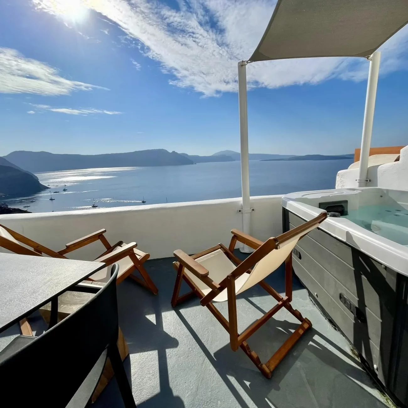 hébergement de rêve à Oia, avec terrasse privée et jacuzzi, offrant une vue à couper le souffle sur la caldeira. Le logement était proposé à un prix réduit à 50%. C’était sans doute le plus beau logement que j’aie jamais réservé !