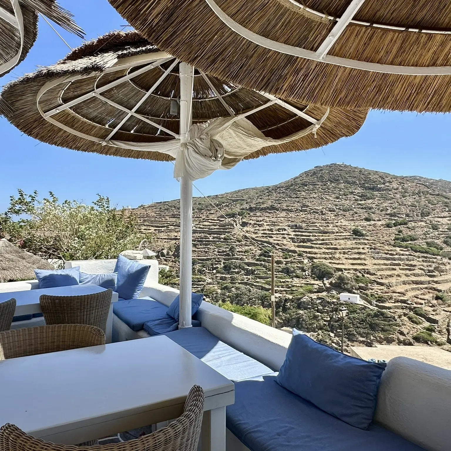 Pour faire une pause bien méritée, arrêtez-vous à To Konaki pour un verre sur sa terrasse, avec une vue imprenable sur les collines. Un petit moment de détente bien mérité !