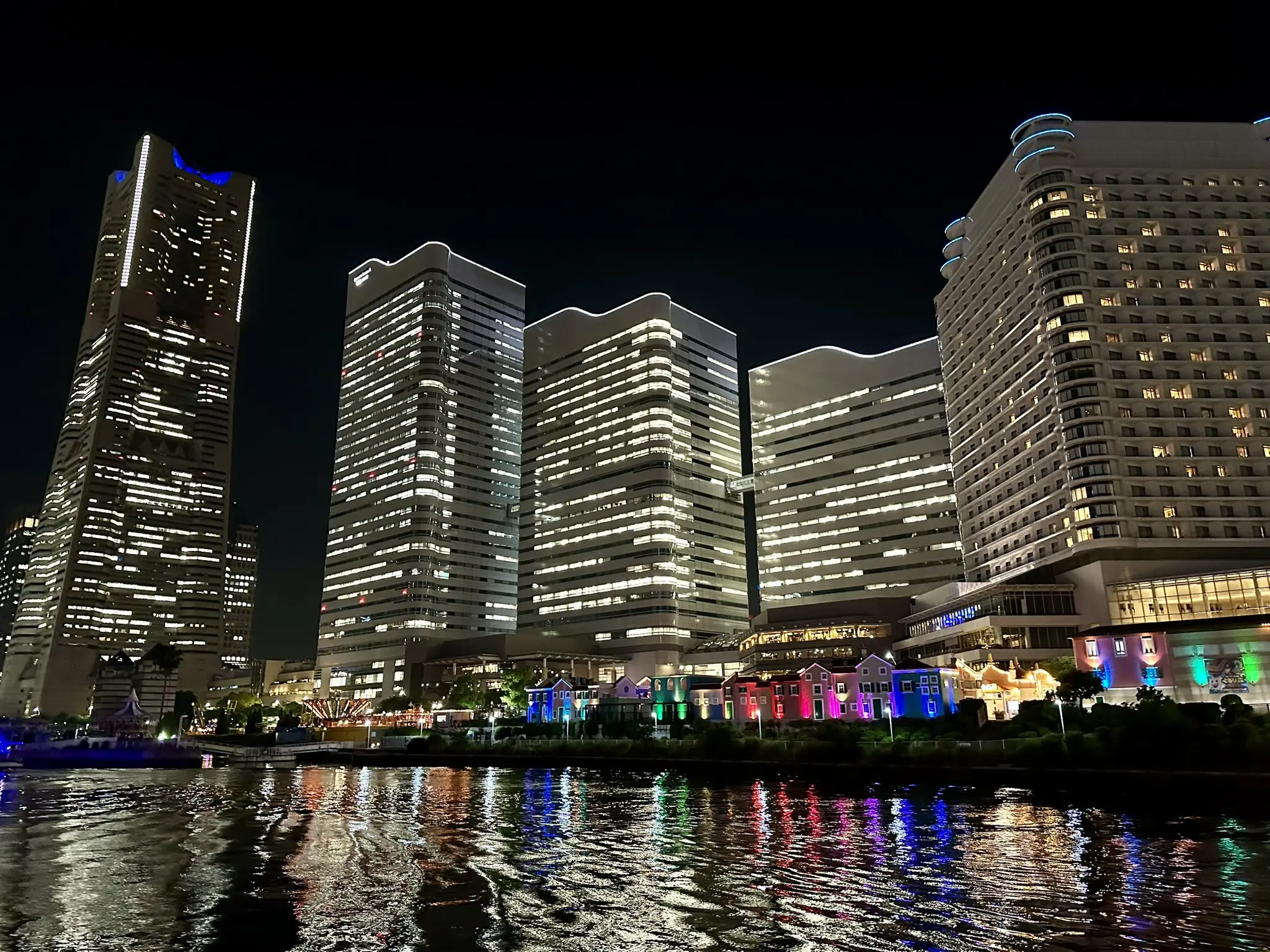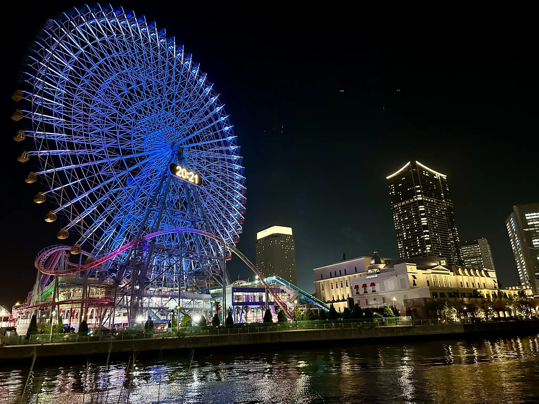 Le soir venu, Takashi et ma mère nous ont laissés (pour ne pas se faire gronder par Rinco !), et c’est avec mon père qu’on a fait une petite visite de nuit de Yokohama. L’ambiance nocturne est magique, avec les lumières de la ville qui s’allument. On a commencé par la promenade maritime de Minato Mirai, avec ses gratte-ciel modernes et la gigantesque grande roue Cosmo Clock 21 (l’une des plus grandes au monde, avec plus de 100m de hauteur !), située dans le centre commercial Cosmo World. Et là, on peut aussi admirer le majestueux navire Nippon Maru. Puis direction Akarenga, un ancien entrepôt de briques rouges transformé en un complexe commercial avec restaurants, boutiques de souvenirs et d’artisanat. On en a profité pour se poser et prendre notre premier apéro japonais !