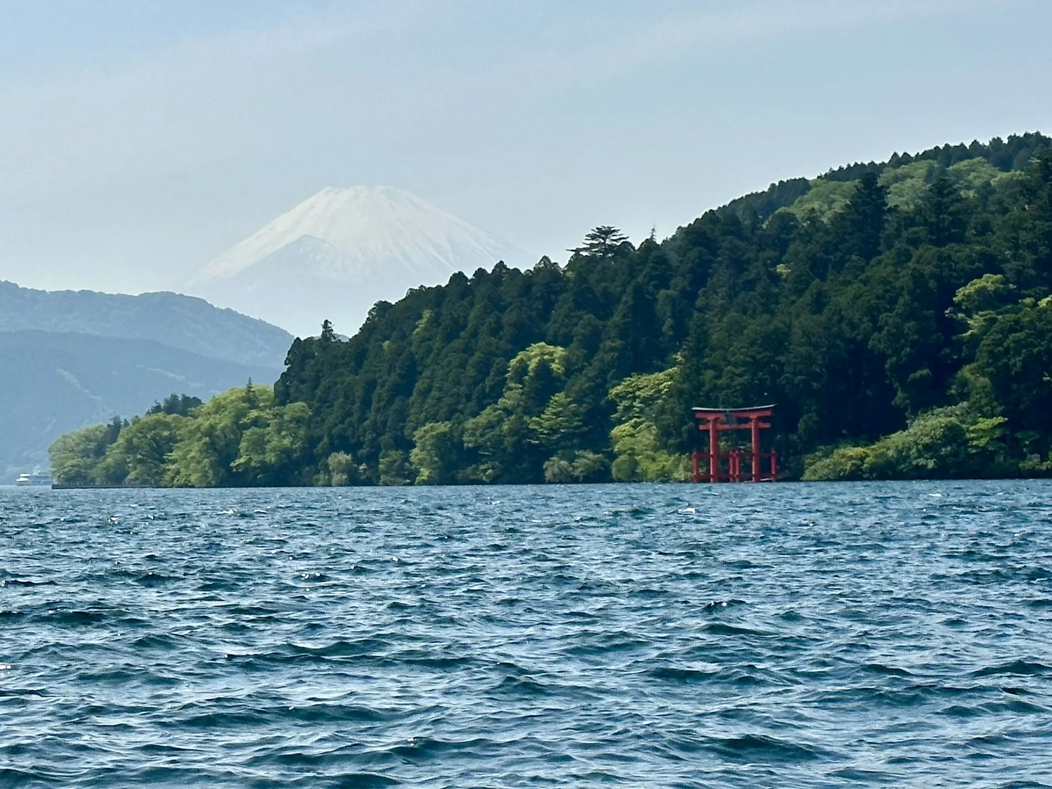 Après cette petite session zen dans le jardin, on se dirige vers le lac Ashi pour un pique-nique face à l’eau. C’est ici qu’on aperçoit le fameux torii flottant du Sanctuaire Hakone-jinja qui émerge majestueusement du lac. Un décor de rêve !