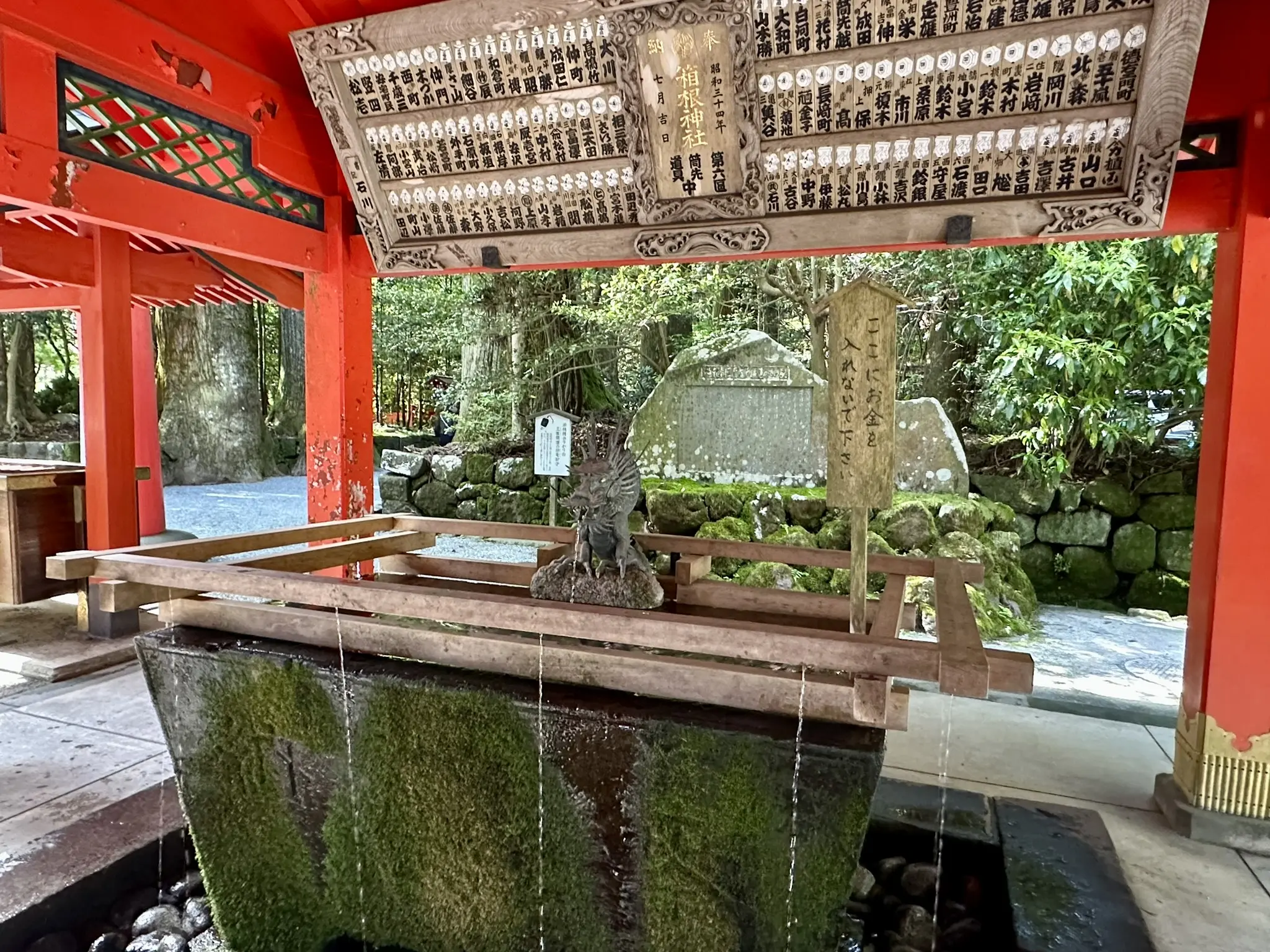 Avant de reprendre la route pour Yokohama, on se lance dans la petite balade depuis le lac Ashi pour rejoindre le sanctuaire. C’est une promenade assez courte (une quinzaine de minutes à pied), mais tellement agréable. Le chemin sinueux est bordé d’arbres recouverts de mousse, et on se régale avec de beaux points de vue sur le torii flottant avant de grimper les derniers escaliers pour arriver au sanctuaire.