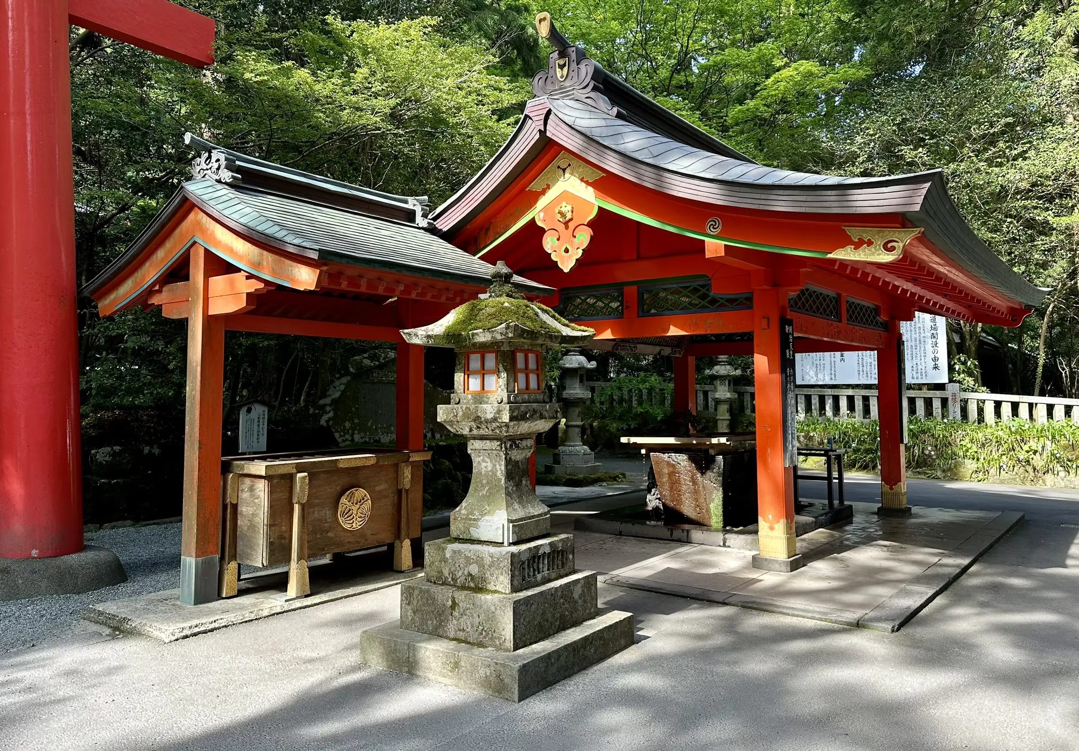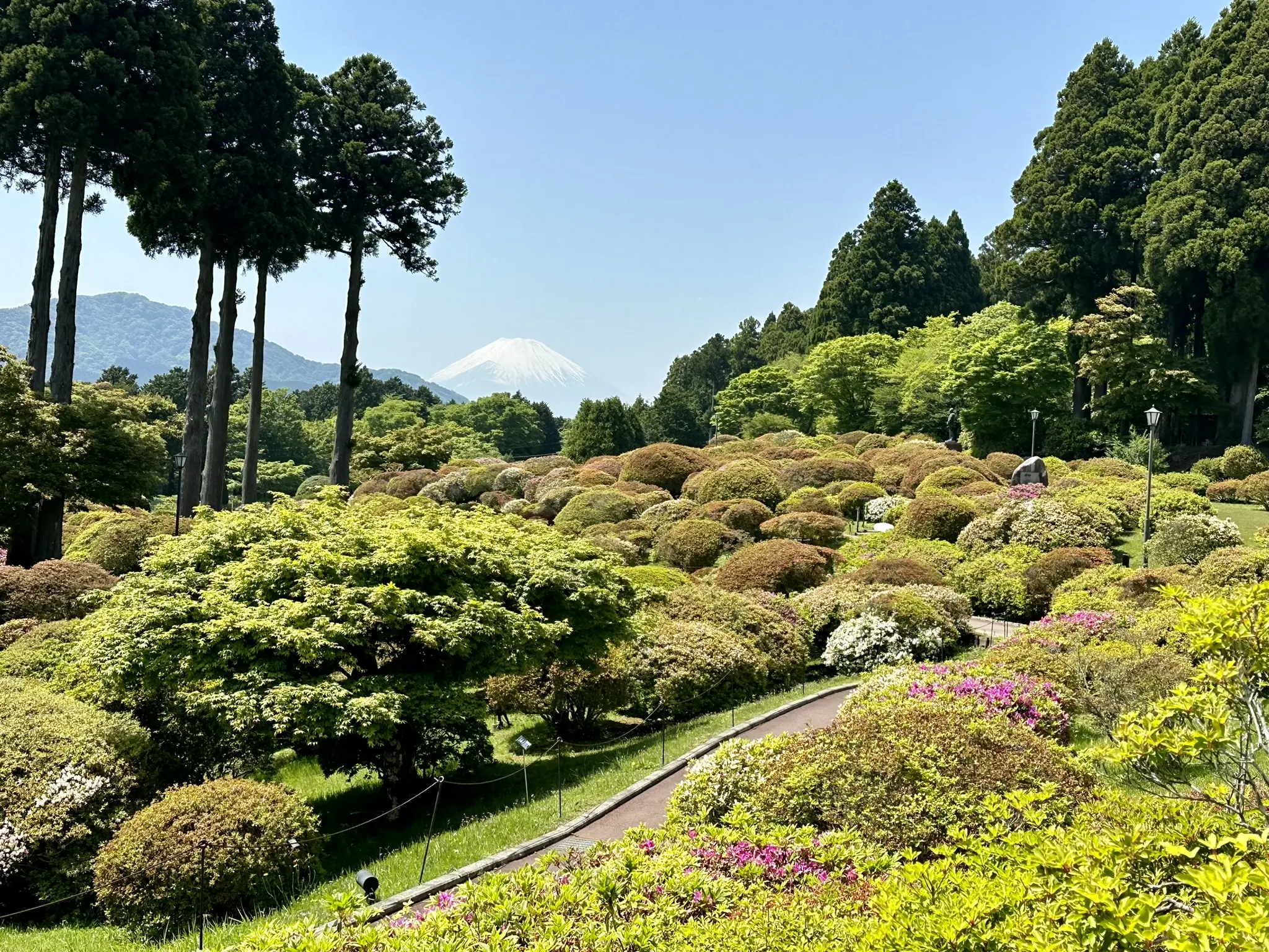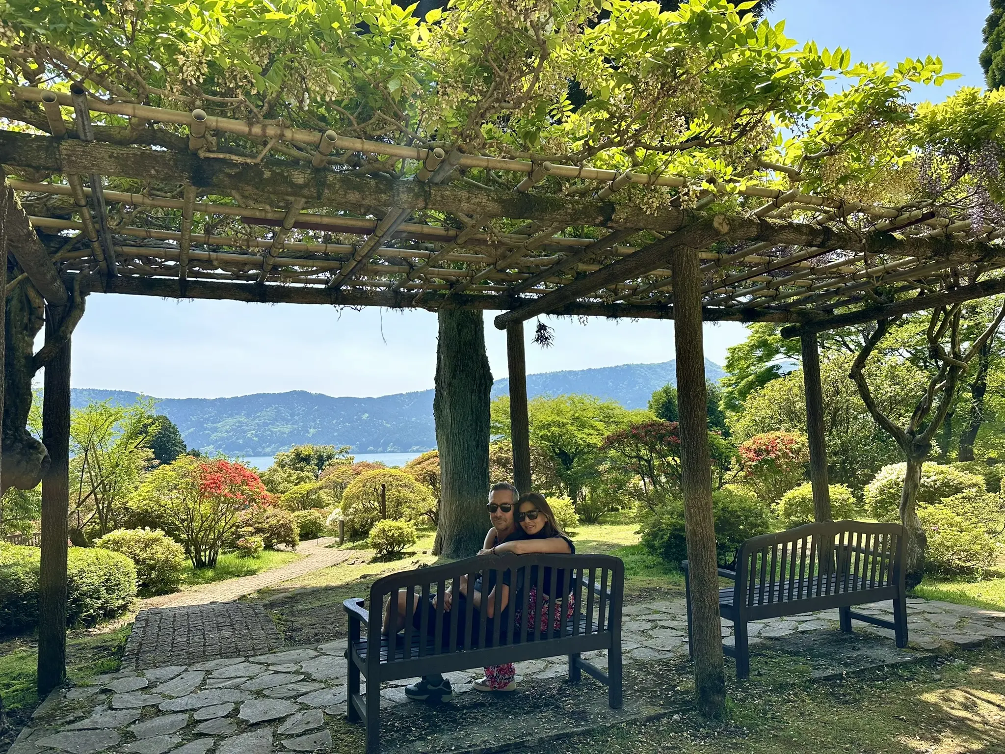 On commence la visite en beauté à l’hôtel de Yama, un endroit avec un grand jardin d’azalées, qui est ouvert au public (pas besoin d’être client de l’hôtel, cool non ?). Et là, surprise, la vue sur le lac Ashi et le Mont Fuji en arrière-plan est juste magique. La balade dans le jardin est super agréable, c’est calme, paisible et un régal pour les yeux.