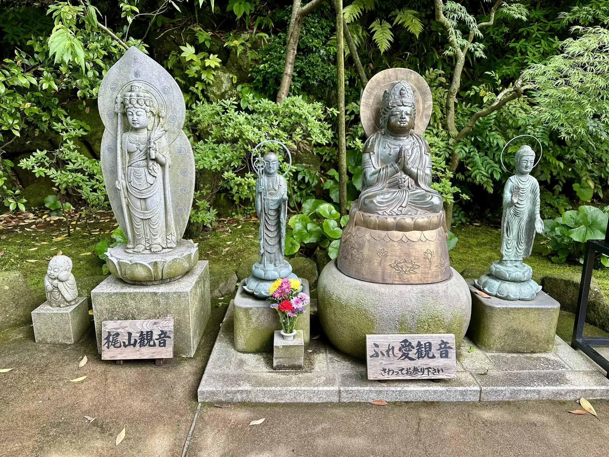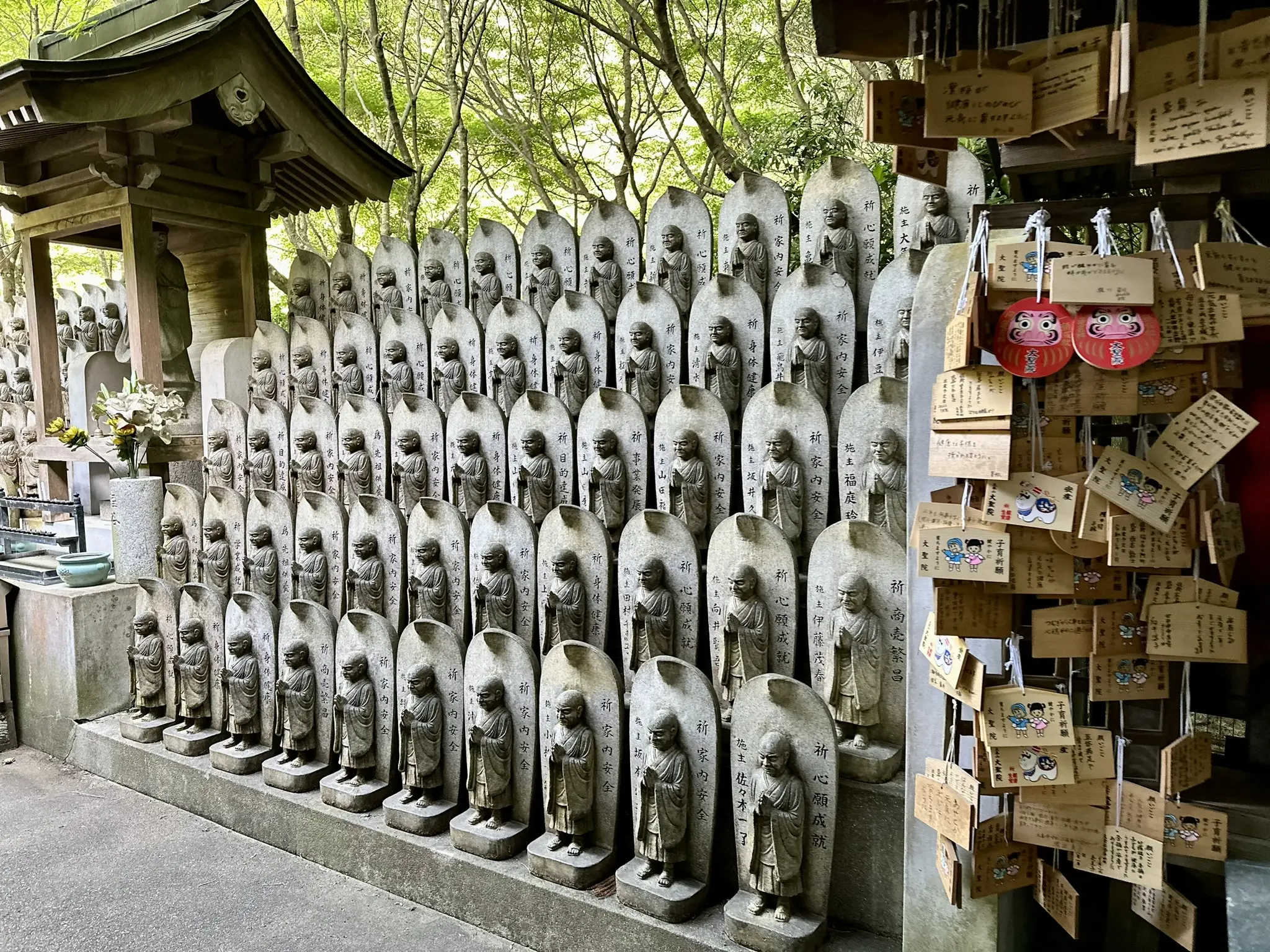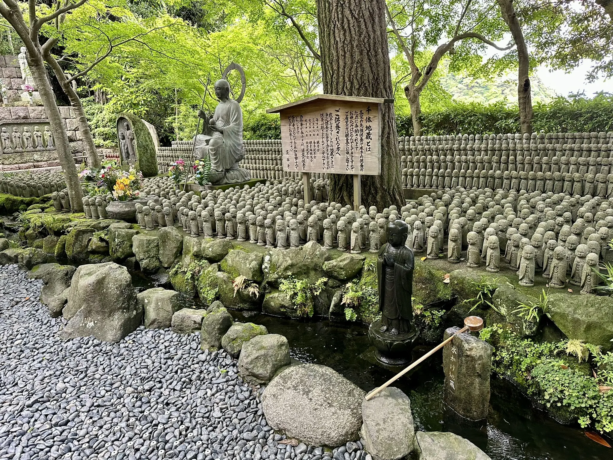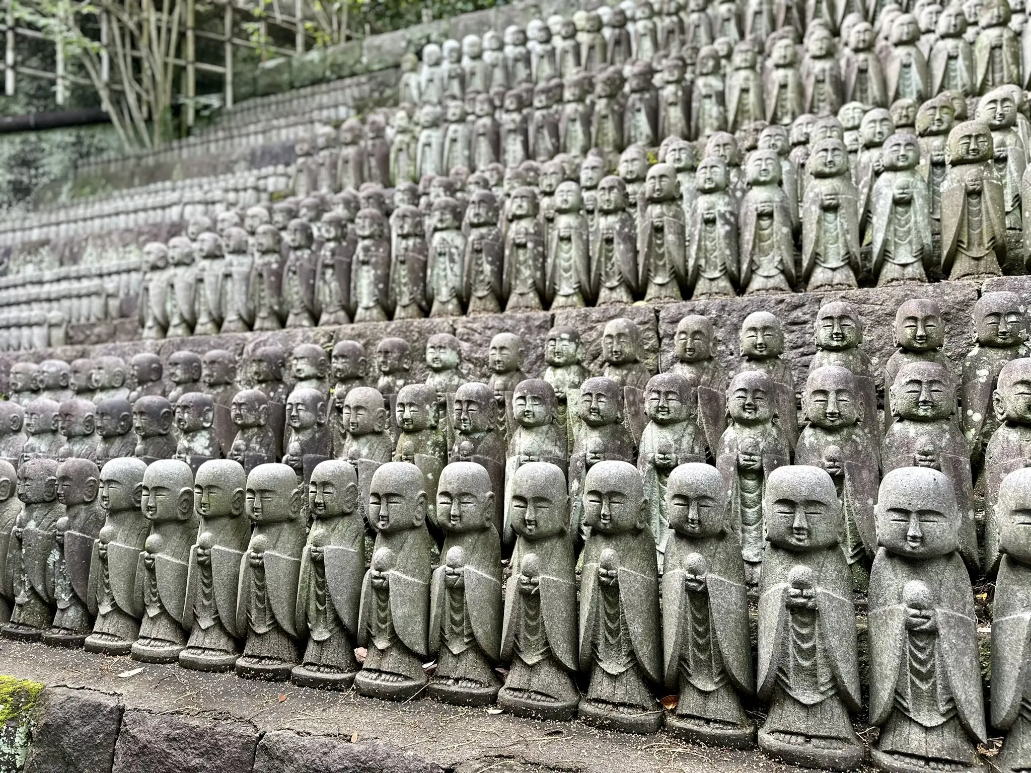 Ensuite, on file vers le temple Hase-dera, perché sur les hauteurs de Kamakura. Il est à une trentaine de minutes de marche depuis la gare de Kamakura ou à 10 minutes depuis Kotoku-in. Ce temple bouddhiste est célèbre pour sa statue géante de Kannon, la déesse de la miséricorde, qui fait plus de 9 mètres de haut et est recouverte de feuilles d’or. En plus de ça, le jardin japonais est super beau et les étangs sont hyper apaisants. Un petit détour sympa nous mène dans la grotte Benten-Kutsu, où on découvre des statues de la déesse des arts Benzaiten et des enfants Jizô, protecteurs des petits. En haut de la colline, la vue sur la baie de Kamakura est juste incroyable. On en profite pour une pause gourmande avant de visiter la dernière statue, celle de Kannon à onze têtes. Un vrai moment zen.