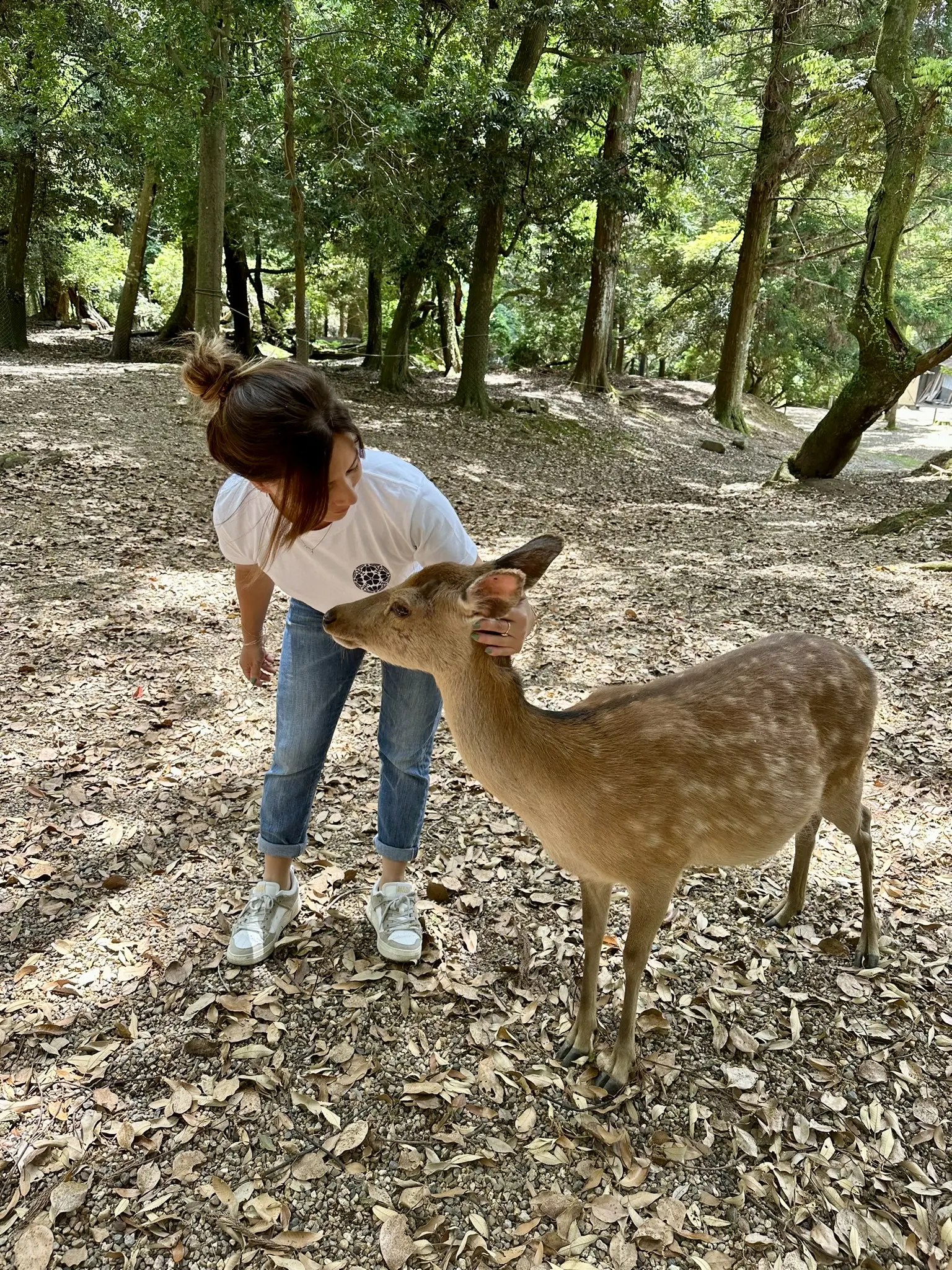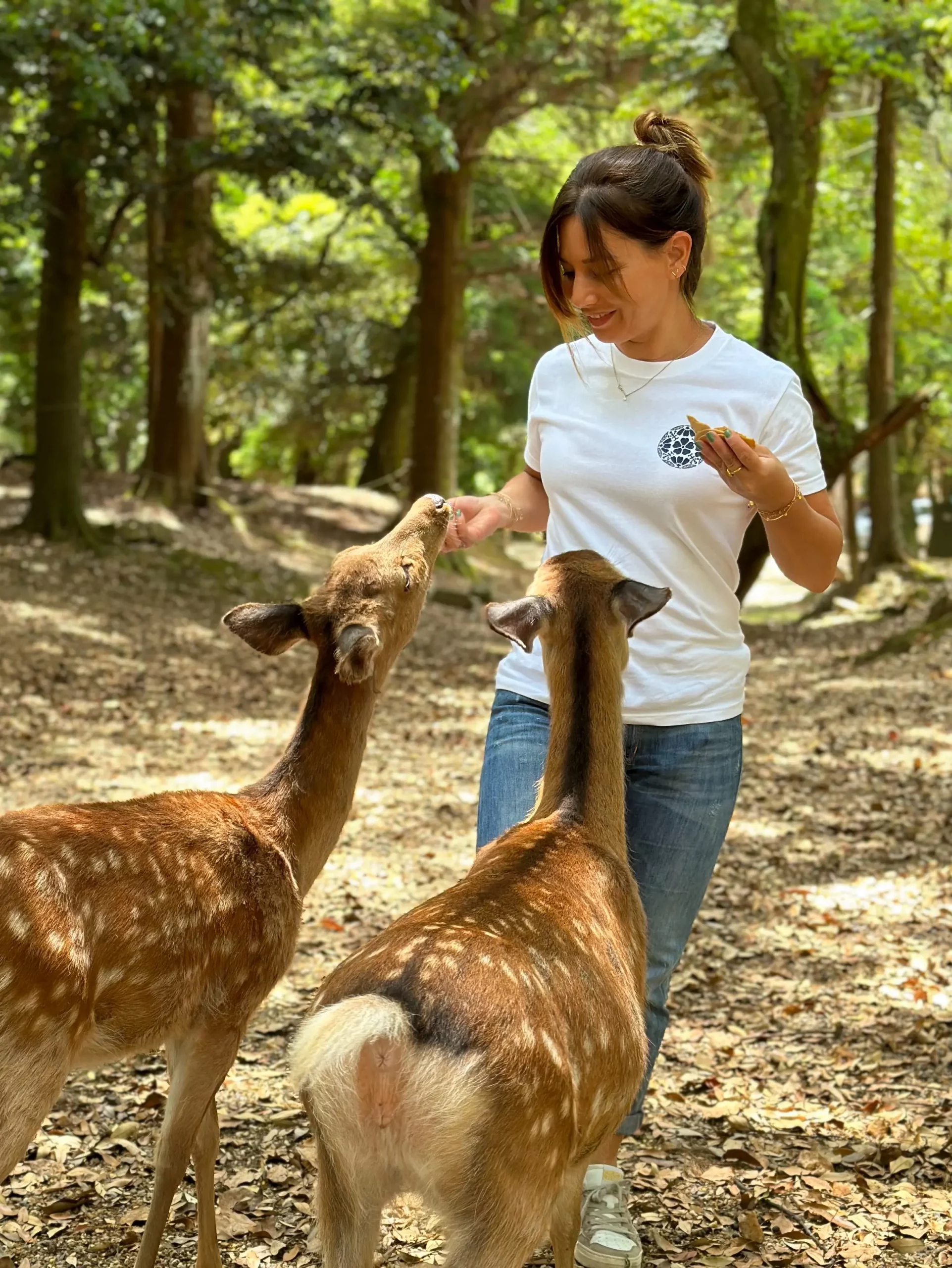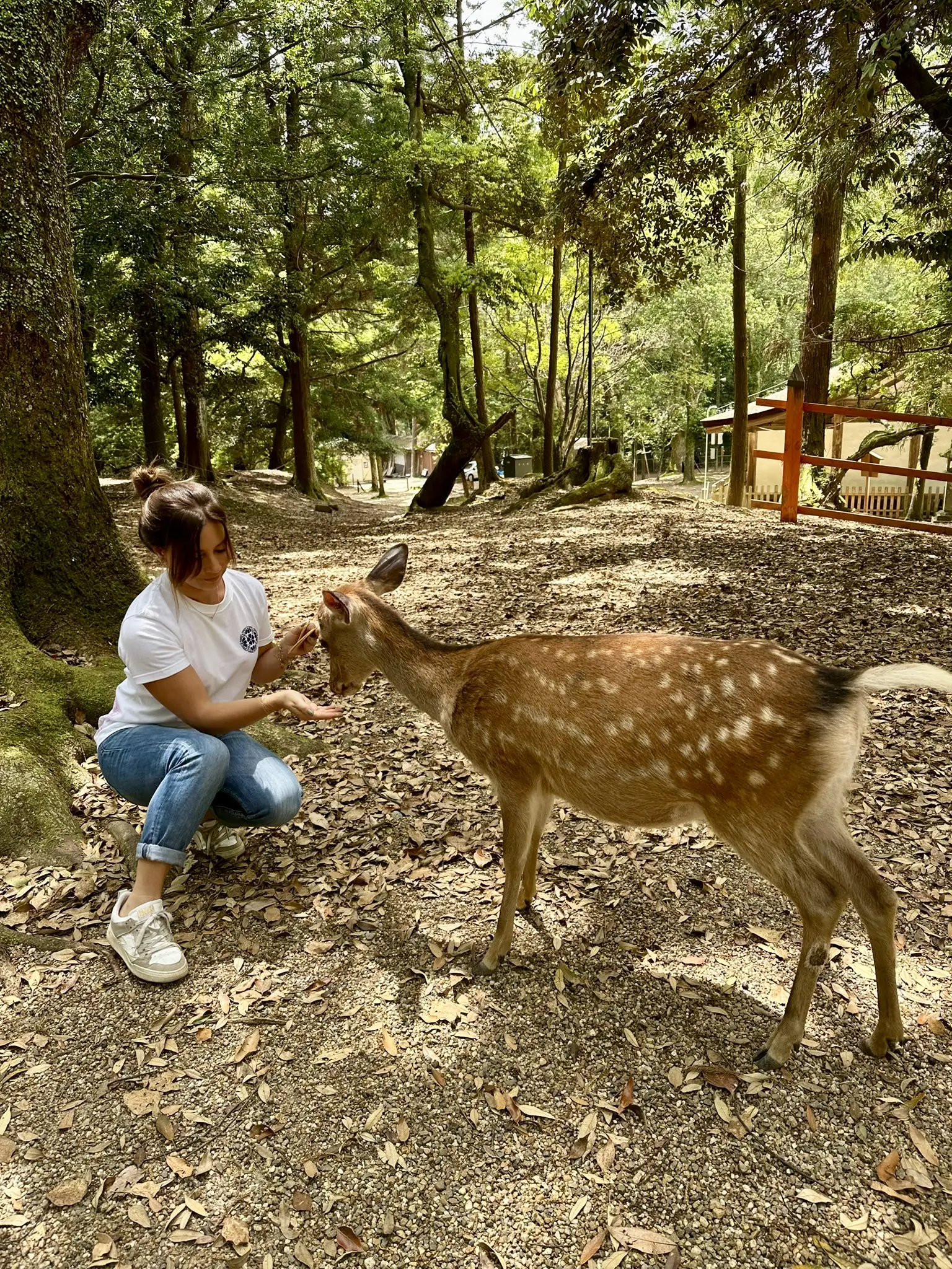 Après notre escapade à Kyoto, on prend la direction de Nara pour une journée de déconnexion totale. Et là, c’est le moment tant attendu : le parc de Nara, maison des fameux daims ! Honnêtement, je crois que je suis encore plus excitée que ma nièce Jun d’être enfin là. Depuis le début de mon voyage, j’avais qu’une hâte : rencontrer ces petits animaux tout mignons qui se baladent librement.