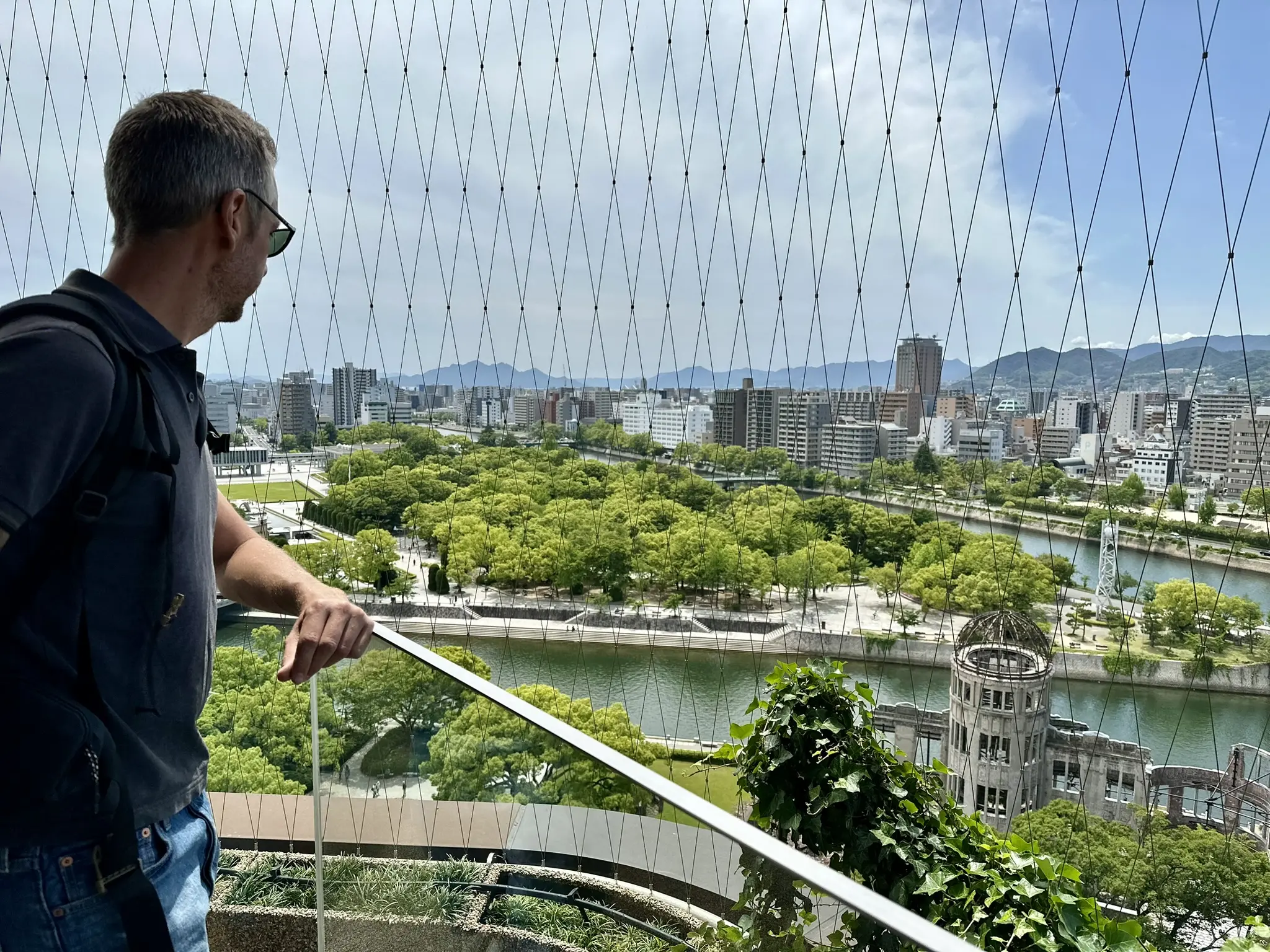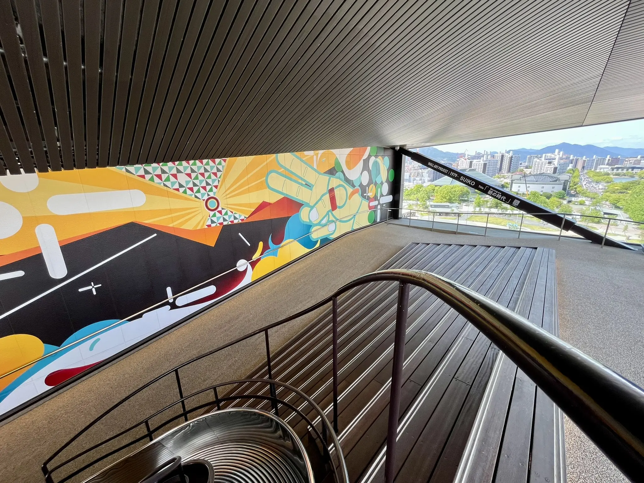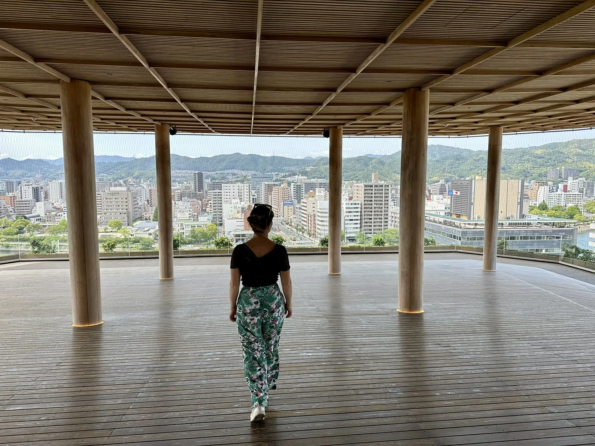 Avant de dire au revoir à Hiroshima, on prend un peu de hauteur en montant à la terrasse d’observation de la tour Orizuru. Là-haut, on devient spectateur d’un centre-ville qui allie histoire, modernité, urbanisme et nature. Le contraste est juste fascinant. Et pour redescendre les douze étages de l’Orizuru Tower, on choisit une option un peu décalée : le toboggan ! On récupère un petit tapis, et c’est parti pour une descente rigolote (bon, pas franchement ultra rapide, mais ça met un peu de fun dans la journée) !