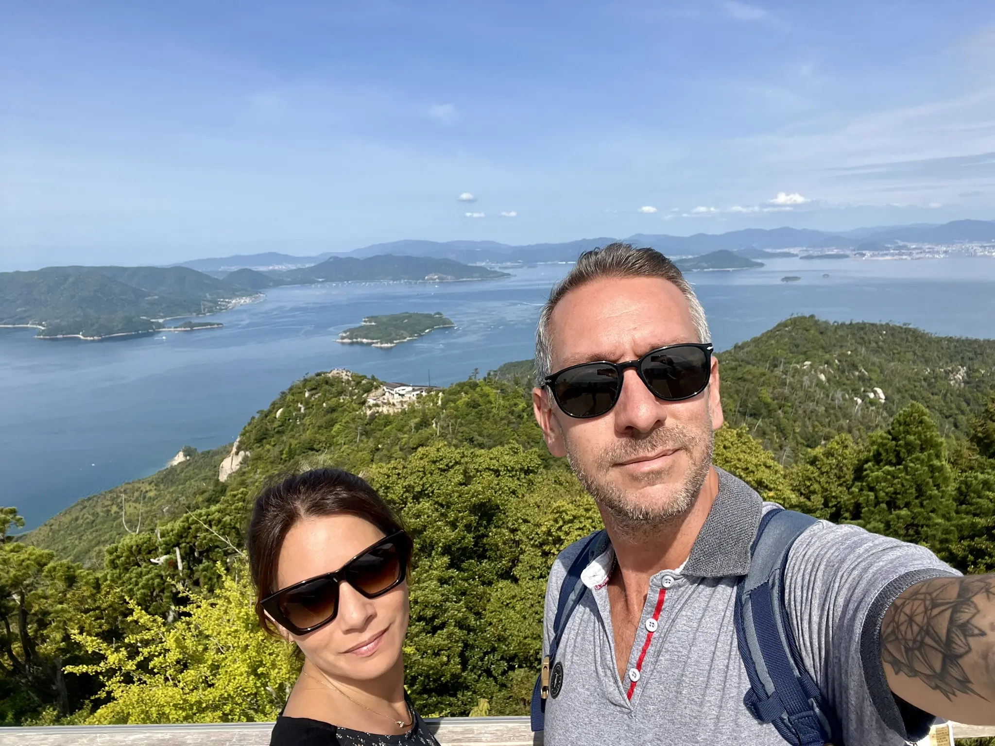 Le lendemain, grosse journée : on part explorer Miyajima. Dès qu’on arrive en bateau sur l’île, on se dit : « Non, pas question de faire comme tout le monde et prendre le téléphérique ! ». On attaque direct avec une grosse marche pour rejoindre le Mont Misen. Il y a trois sentiers qui mènent au sommet, et on choisit le sentier Omoto pour l’aller, et Daisho-in pour le retour.