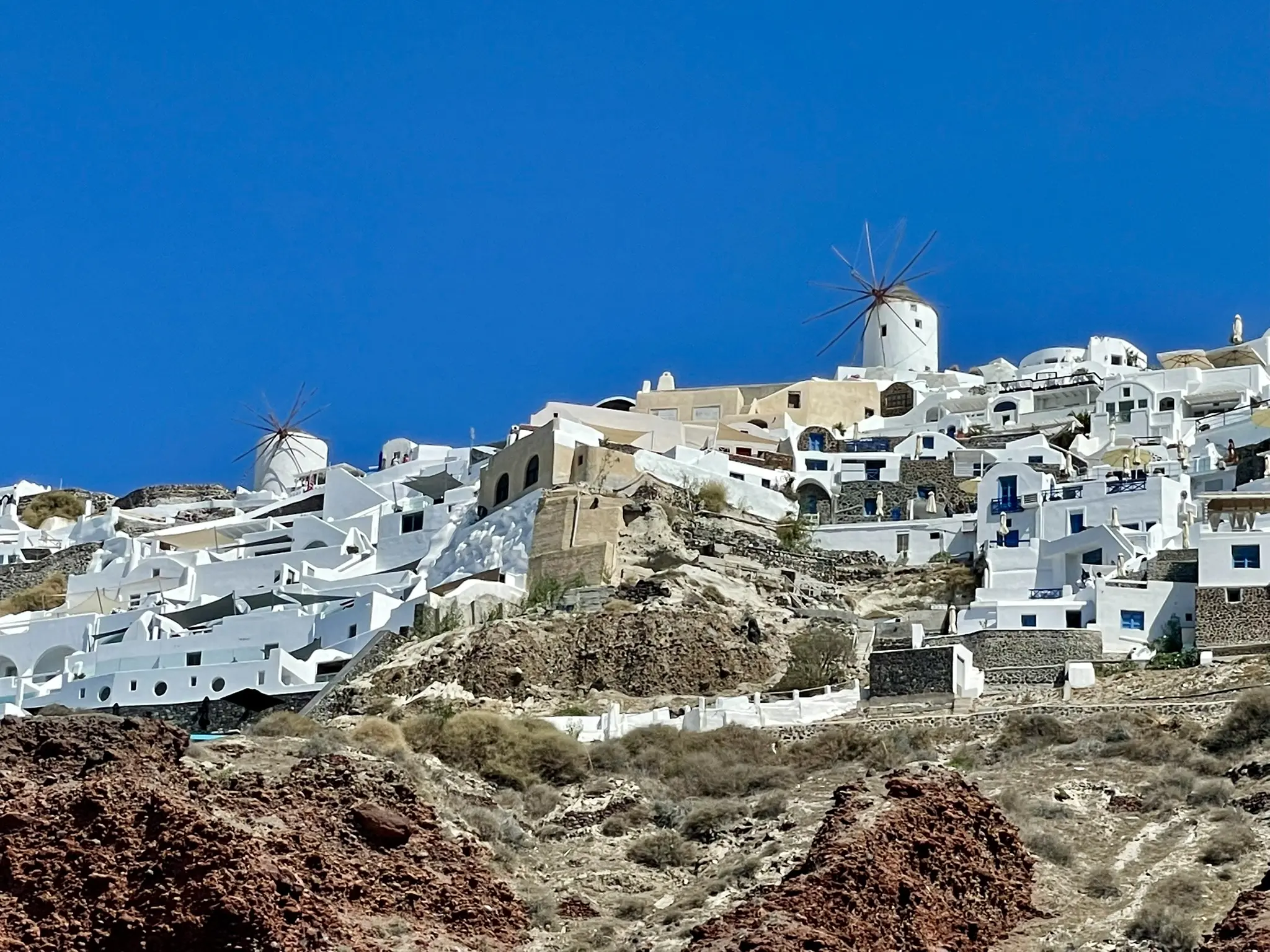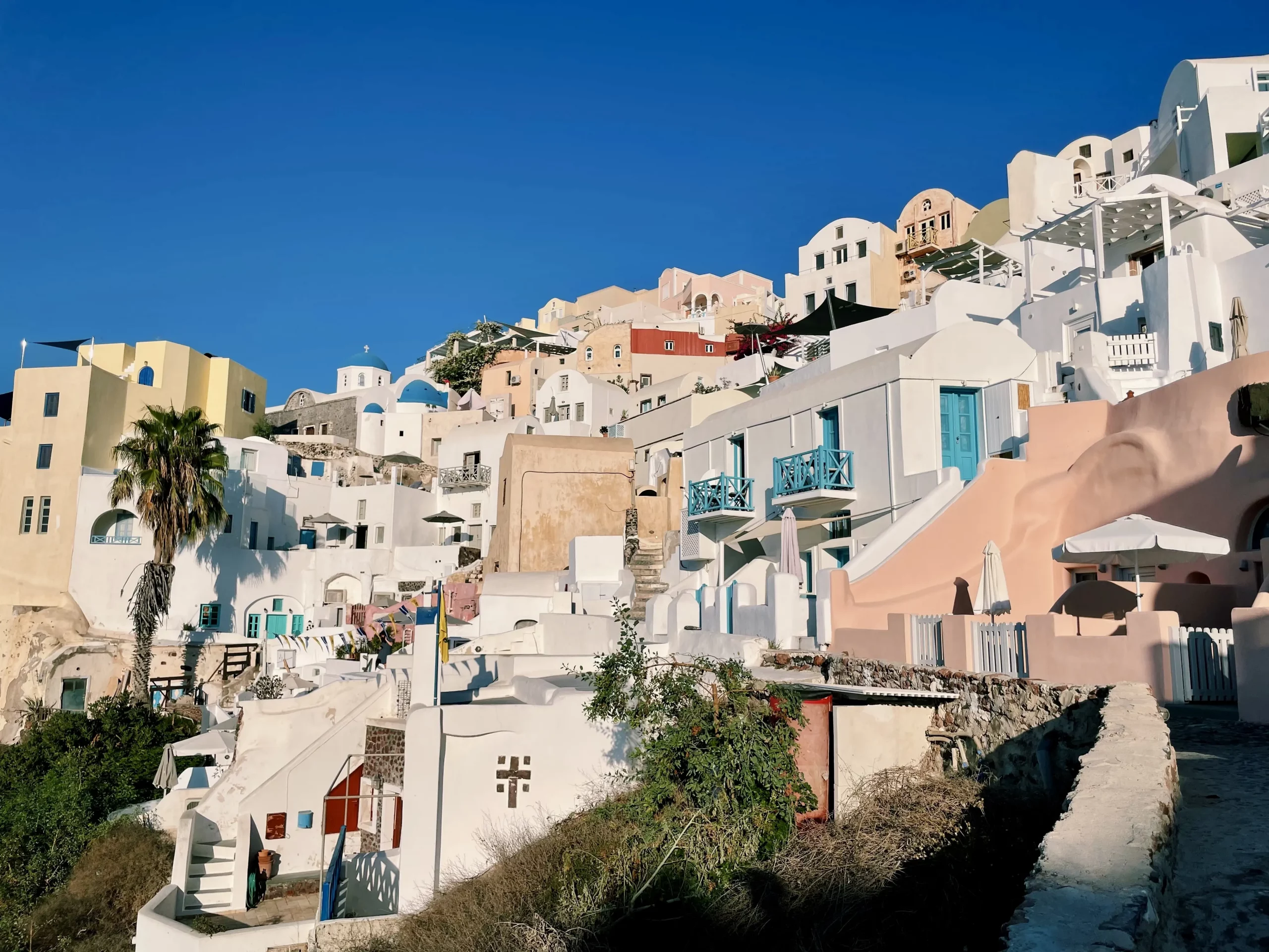 Oia, c’est le spot incontournable, et même mi-septembre, l’île était déjà bien envahie par les touristes. Si tu veux vraiment vivre Oia à son meilleur, il vaut mieux la visiter soit tôt le matin, soit tard le soir. Sinon, tu risques de te retrouver dans la course aux selfies et dans des files d’attente interminables pour décrocher la photo parfaite !