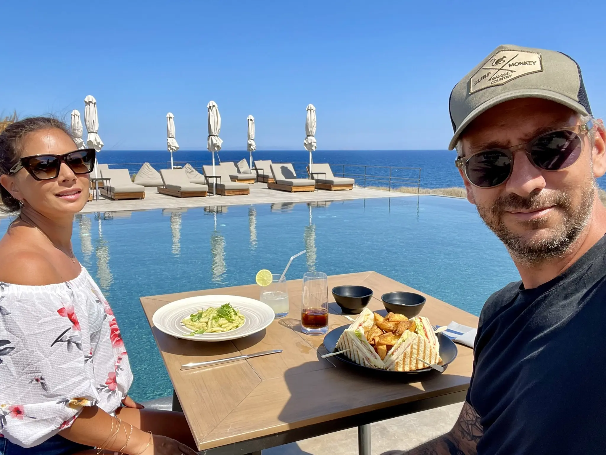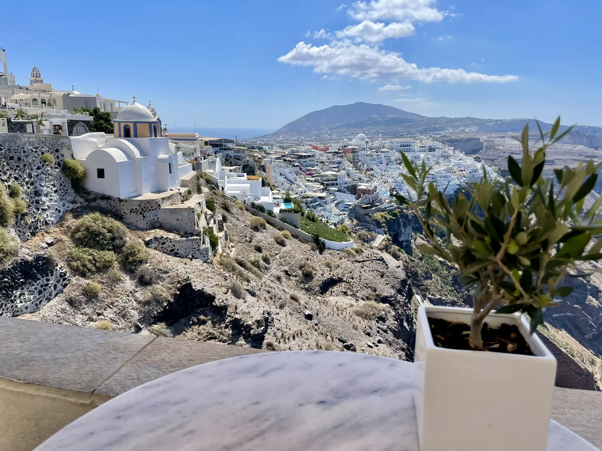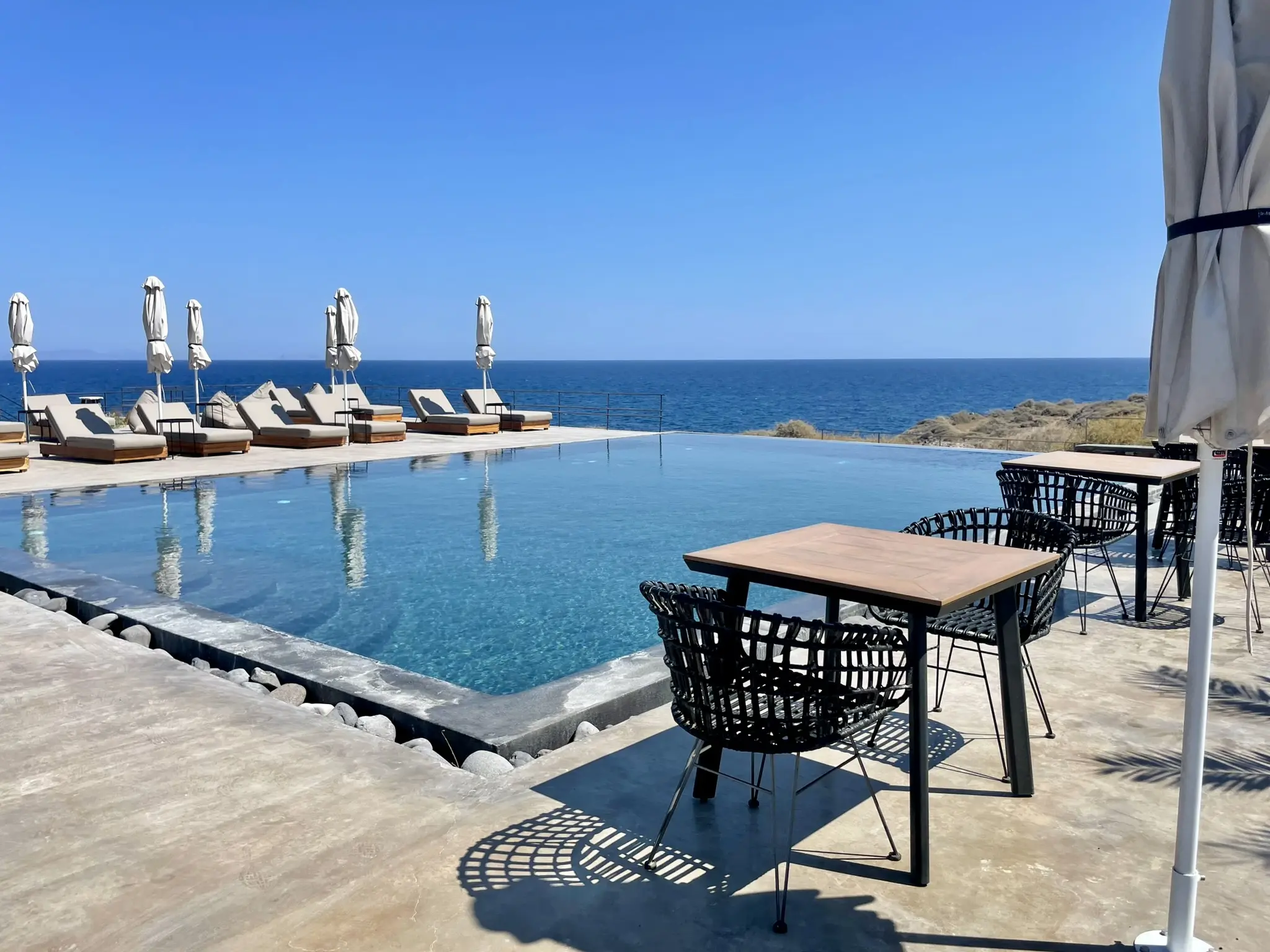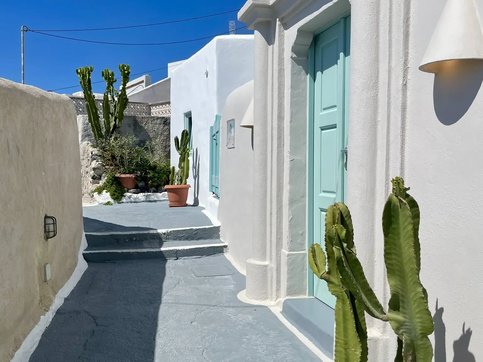 Pour notre séjour express à Santorin, on a décidé de se faire un vrai plaisir avec un logement de rêve à Oia : terrasse privée, jacuzzi et une vue qui te coupe le souffle sur la caldeira. Le top ? Quand la foule envahissait Oia, nous, on se la coulait douce dans notre petit coin de paradis. Le programme : baignade relaxante dans le jacuzzi, verre de vin blanc à la main et des panoramas de dingue. C’était l’endroit parfait pour se ressourcer et profiter de l’île en mode chill.